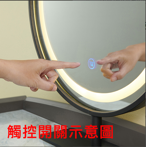 桌上鏡採白色防鏽烤漆鐵框造型.附LED三色調節觸控燈