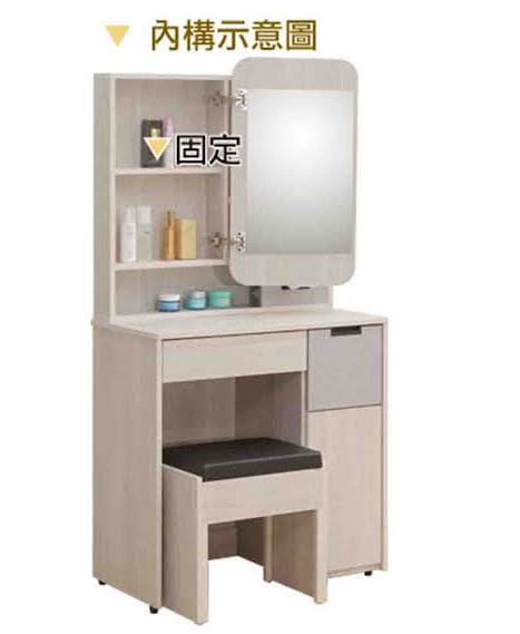 243-2拉蒂亞2.7尺開門鏡台(含椅) 鏡座高度80公分 鏡座開門內無隔板 鏡框165開門