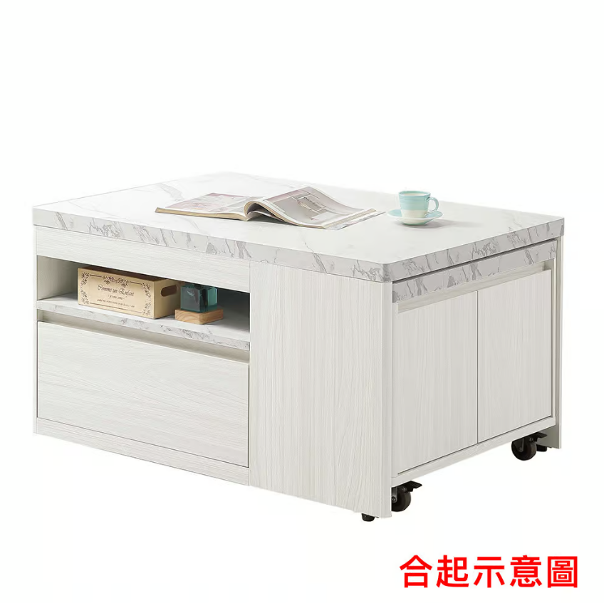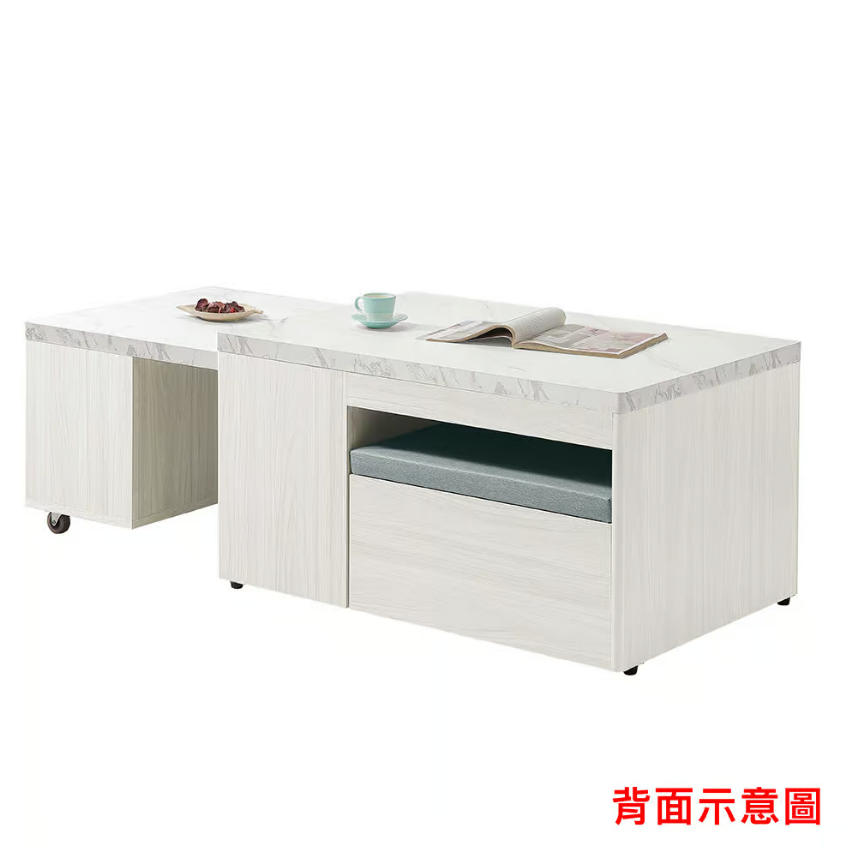 539-3 蘿拉3尺多功能伸縮茶几 (附1張貓抓皮收納型腳椅)(可移動煞車輪x2顆) (腳椅尺寸:寬55.5x深29x高30cm) (開門內無隔板)