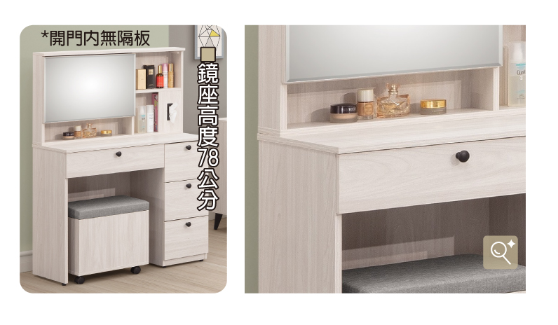 255-2 麗莎3尺開門鏡台(含椅) 鏡面高度78公分 開門內無隔板