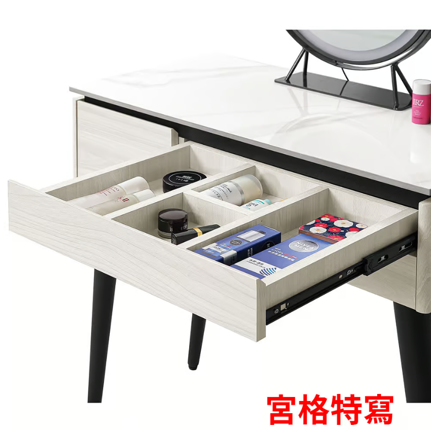 化妝椅為皮面,可掀開置物