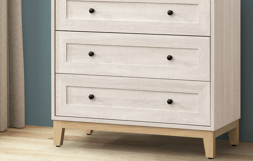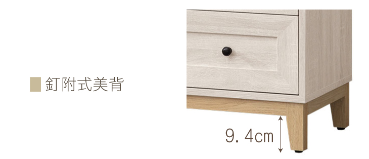 材質耐磨木心板,床頭背墊採貓抓皮革, 抽屜高級鋼珠滑軌,後鈕不鏽鋼緩衝後鈕,把手鐵製烤漆手把,背板釘附式美背處理。
