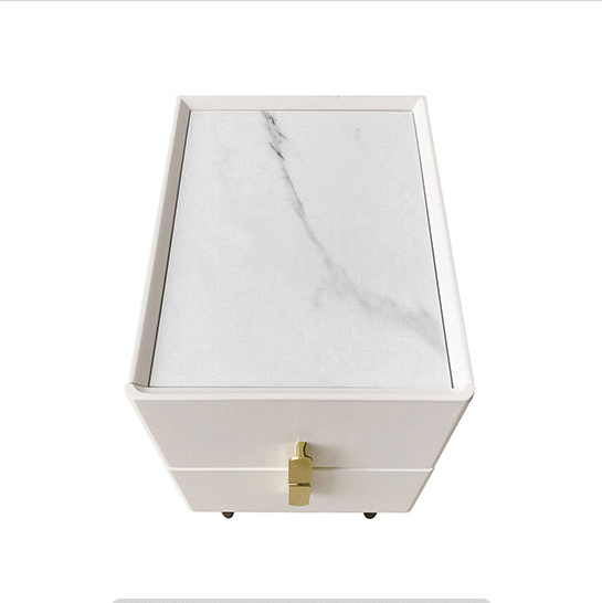 410-15內華達米白色岩板床頭櫃(單) 高級MDF、平光岩板、 15cm防鏽烤金漆鐵腳、 抽屜採鋼珠滑軌、