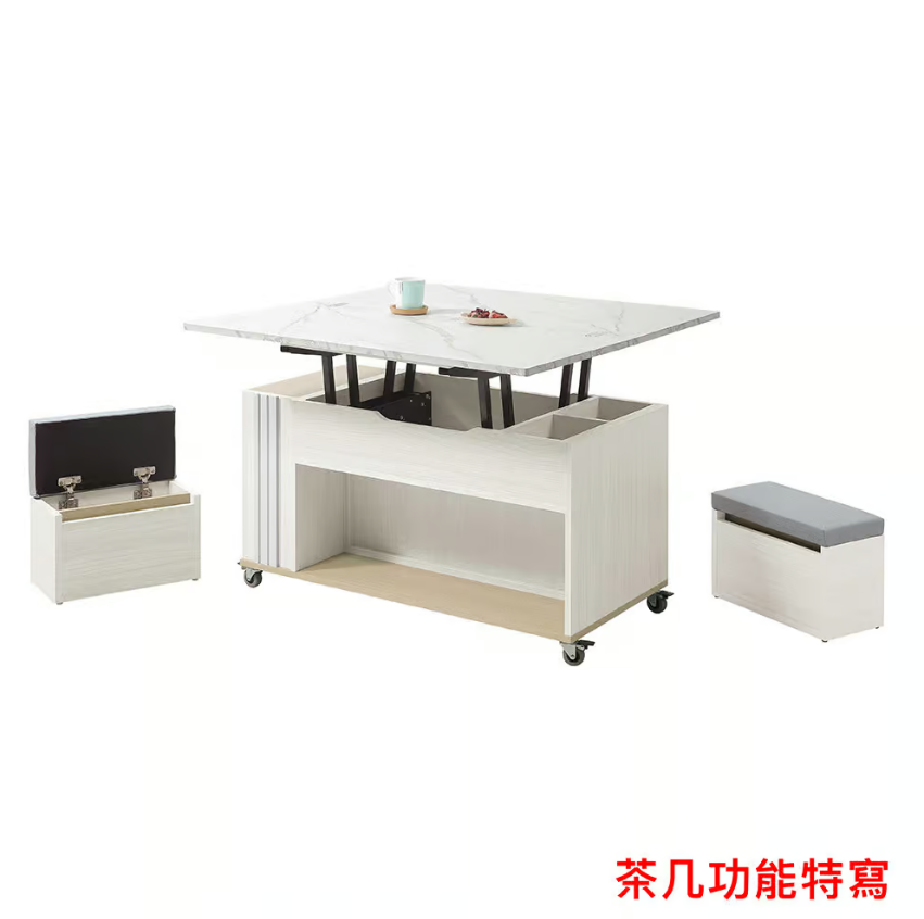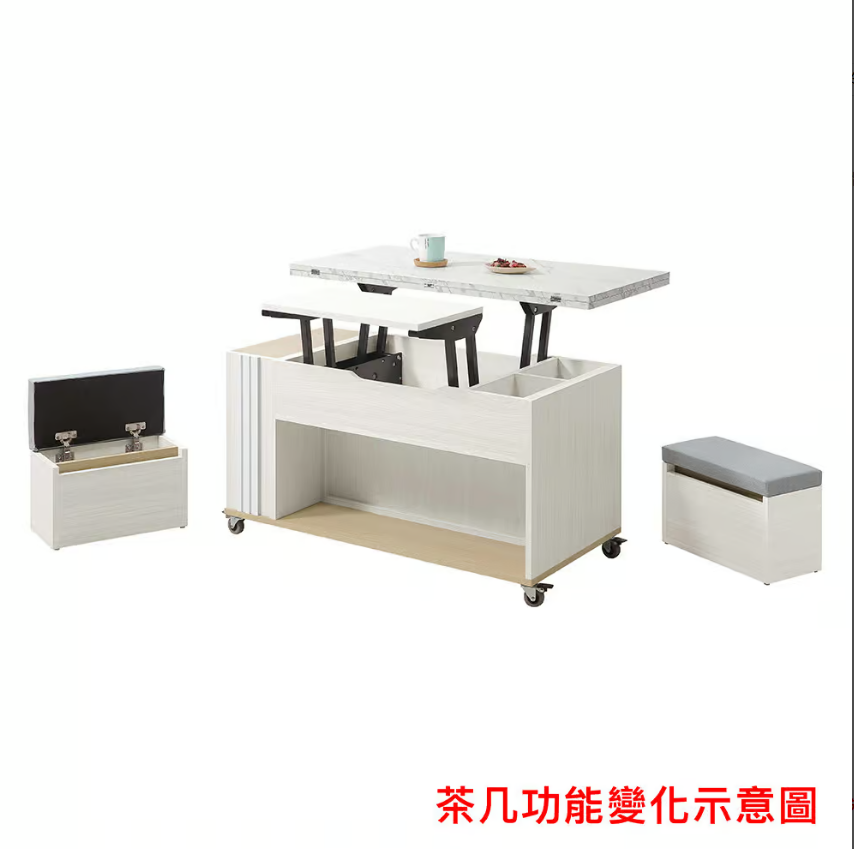 536-3洛蒂3.3尺多功能升降茶几 (附2張貓抓皮收納型腳椅)(可移動煞車輪x4顆) (腳椅尺寸:寬39x深20x高28cm)