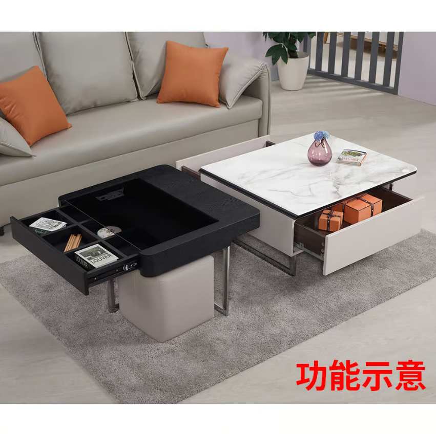 高級 MDF+6mm 數位印花工藝科技石面 +強化玻璃 + 防鏽電鍍腳架
