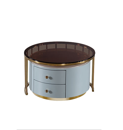 高級 MDF+6mm 仿大理石紋強化玻璃+8mm 茶色強化玻璃+ 防鏽鍍鈦金色金屬腳架、