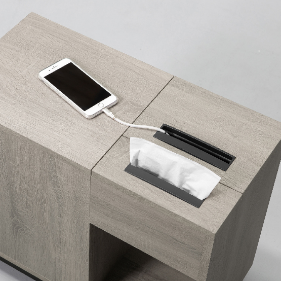 ⊙附面紙收納格、安全認證USB整合插座、