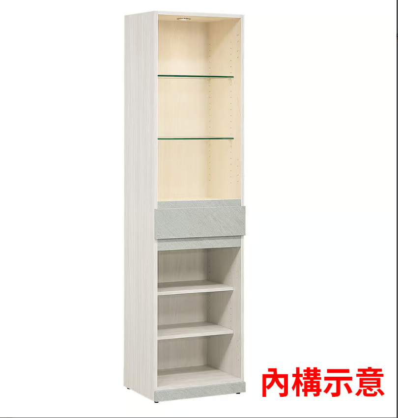 586-2 黛拉1.65尺玻璃收納櫃 (附2片8mm玻璃隔板.2片活動木隔板) (附按鍵式黃光投射燈具)(門片採用3mm強化玻璃)