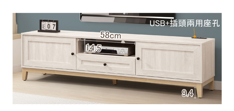 610-5維特6尺電視櫃木門內無隔板 附1個電線孔 附USB+插頭兩用座孔