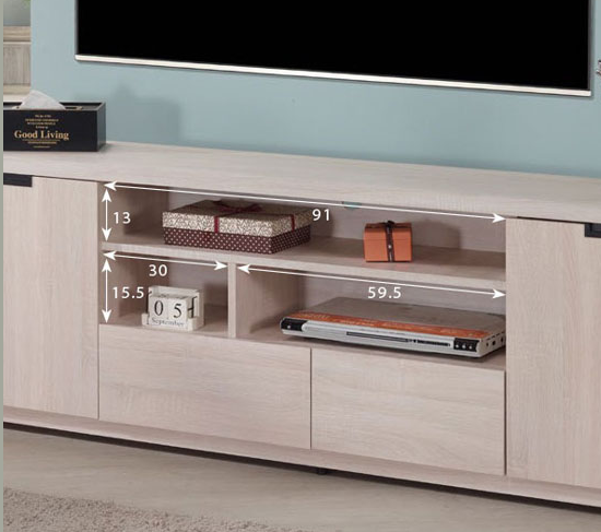 619-2 卡亞白梧桐色6尺電視櫃 附*1電視孔 左右開門內各附*1活動隔板