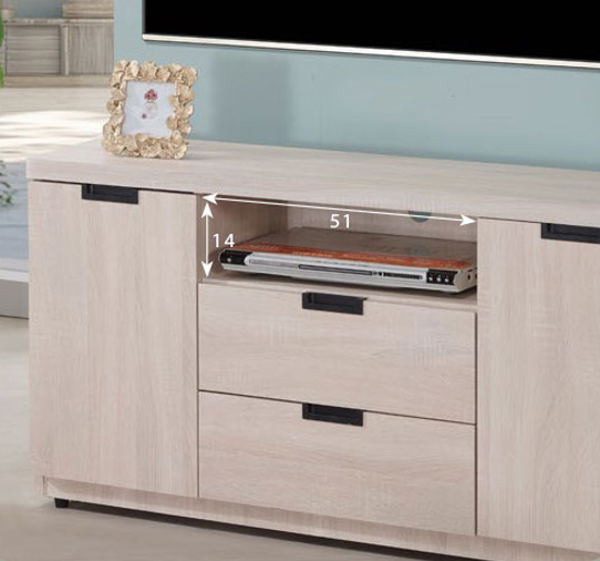 620-2 卡亞白梧桐色4尺電視櫃 ⊙附1個電線孔、 ⊙左右開門內各附1片活動隔板、