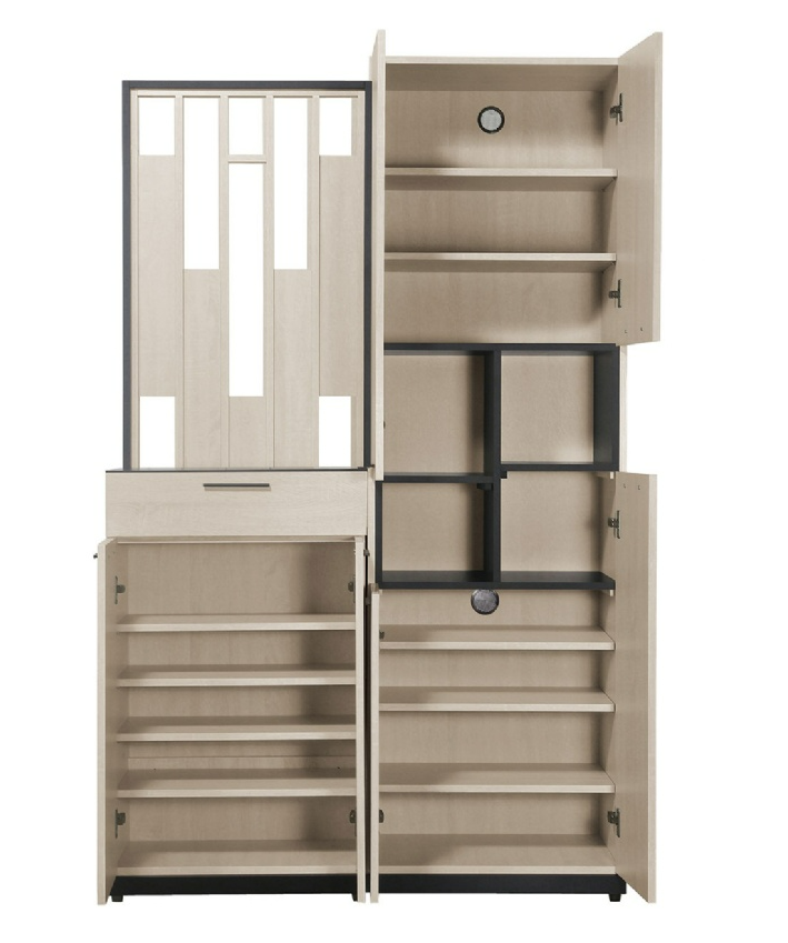 全木心板材質,採用MIT防蛀環保低甲醛A級木心板,表面採專利技術木紋同調立體浮雕處理,比擬鋼刷實木視覺觸感,格板採用18mm木心板,耐重不易變形