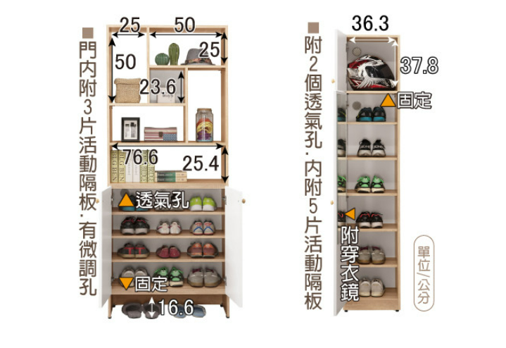 ⊙1.32尺二門玄關鞋櫃+2.65尺玄關鞋櫃、
