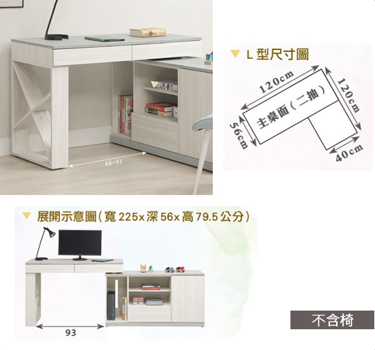 705-2 黛拉4尺組合書桌 全組 ⊙不分左右方向、 ⊙不含椅、 ⊙一門收納櫃門內附1片活動隔板、
