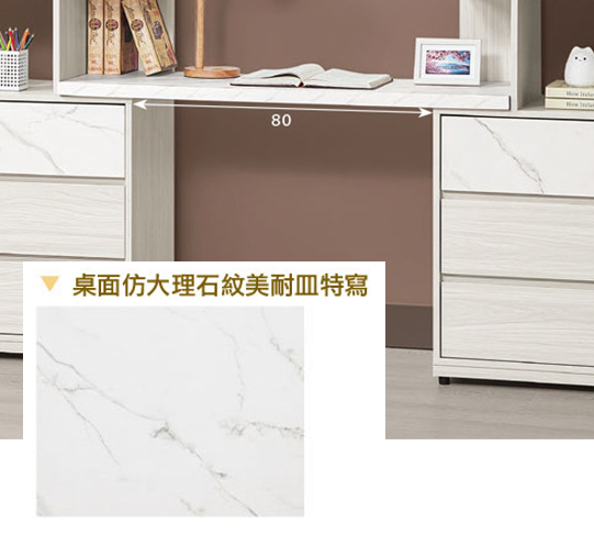 桌面採用仿大理石紋美耐皿材質具高溫耐括磨之特性、
