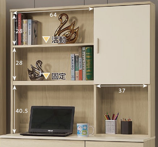 732-9 喬伊白橡木3.5尺書桌 上+下 ⊙木門內有1片固定隔板