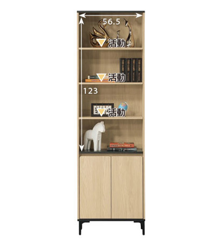 738-3 優悅2尺兩門書櫃 ⊙附4片活動隔板腳高度12.5公分