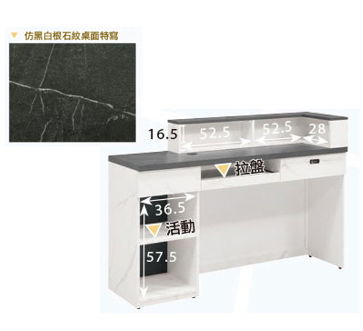 桌面.正面.側面採用仿大理石紋美耐皿材質、