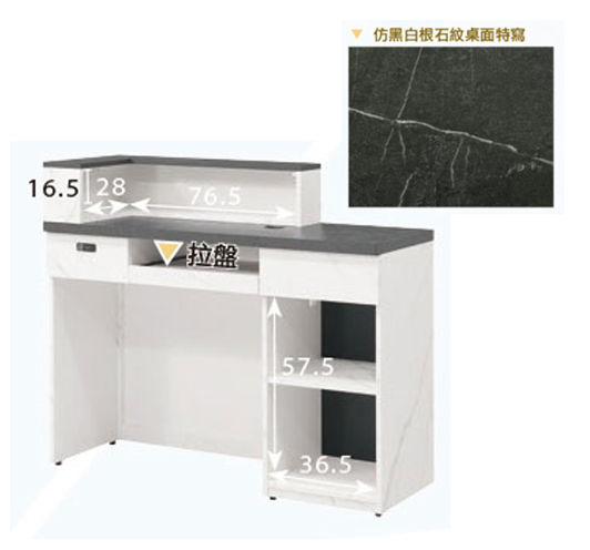 桌面.正面.側面採用仿大理石紋美耐皿材質、