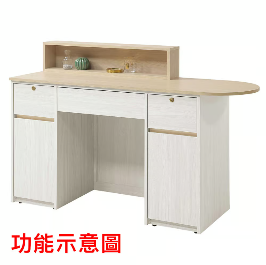 807-3洛蒂5尺多功能桌 (桌面可左右互換.附2個安全鎖) (含桌上架.不含圓邊收納架)(附2片活動隔板)