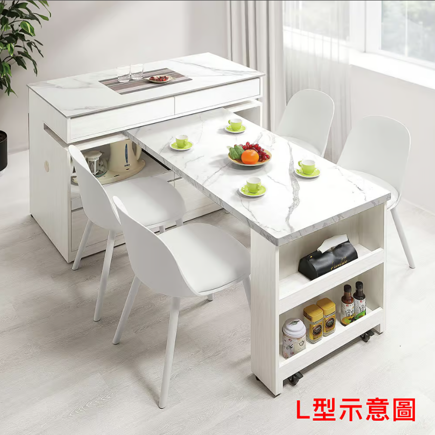 桌面採用仿大理石紋美耐皿材質具高溫耐括磨之特性