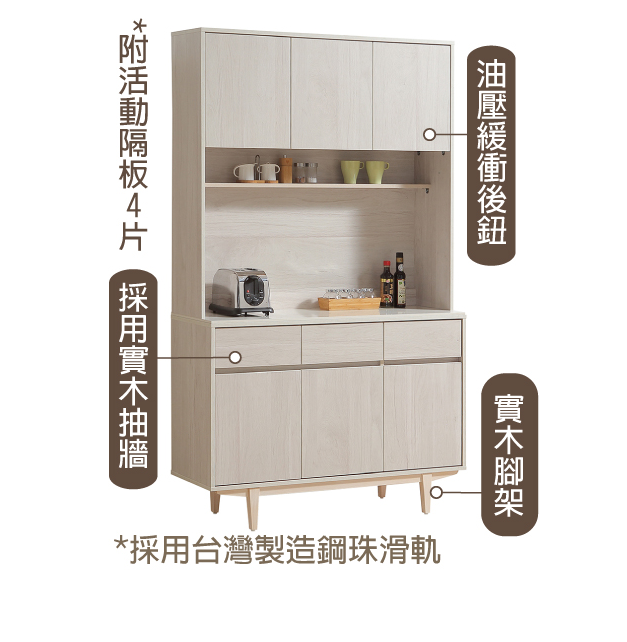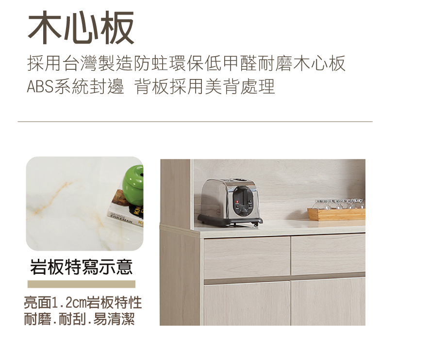 832-4 燕麥5.3尺岩板餐櫃 上+下 ⊙上座附1個插座、 ⊙附2片活動隔板⊙上座左邊開門為5mm長虹玻璃、