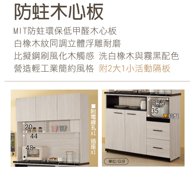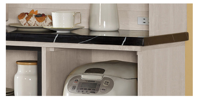 839-4 優悅4尺岩板餐櫃 ⊙附1大2小活動隔板.附1個出線孔、 烤漆黑鐵腳、腳高12.5公分