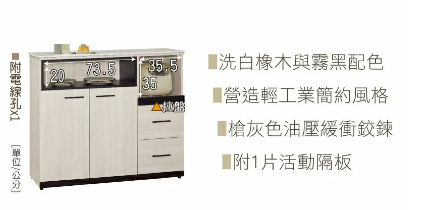 836-5伊凡卡中島型4尺岩板餐櫃下座