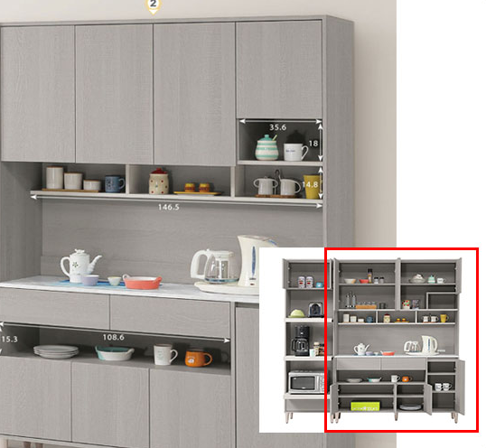 863-3 泰拉5尺餐櫃 上+下⊙附3大3小活動隔板、 ⊙上座附雙孔三插座×1