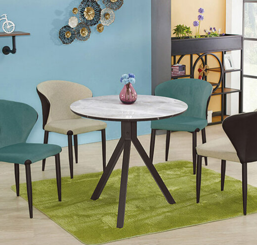 餐桌8mm亮面岩板+黑鐵砂烤漆防鏽處理腳架、