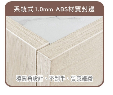 採用系統式1.0mm厚ABS材質封邊處理.質感細緻.延長使用週期.具環保(可回收).耐衝擊.耐磨性.高鋼性特質