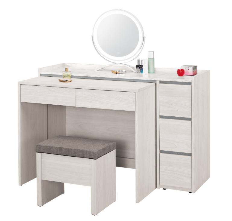 A1035-2 希斯洛4尺伸縮化妝台 全組 含椅 可左右擺放