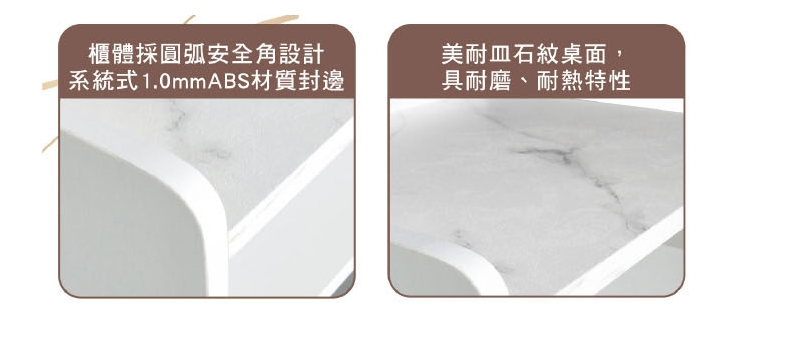 採用系統式1.0mm厚ABS材質封邊處理