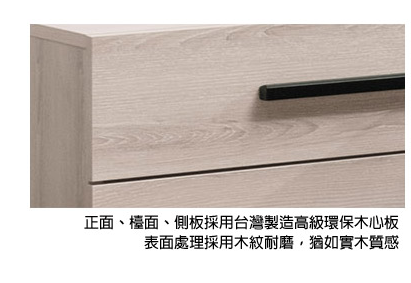 主體(檯面、正面、側板):環保木心板,立體木紋耐磨處理