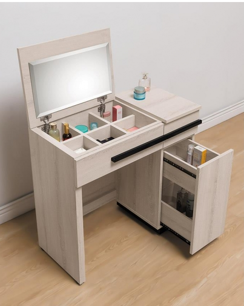 掀鏡設計,鏡子蓋上可當書桌,物品不積灰塵,鏡子也不會對到床喔!