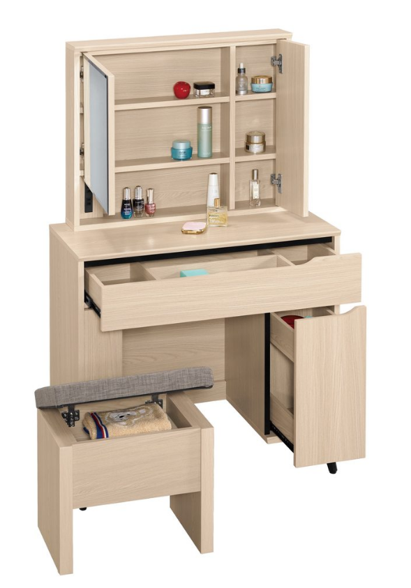規格 朵利斯2.7尺化妝台(含椅)(木門):寬80 X 深40 X 高136 公分