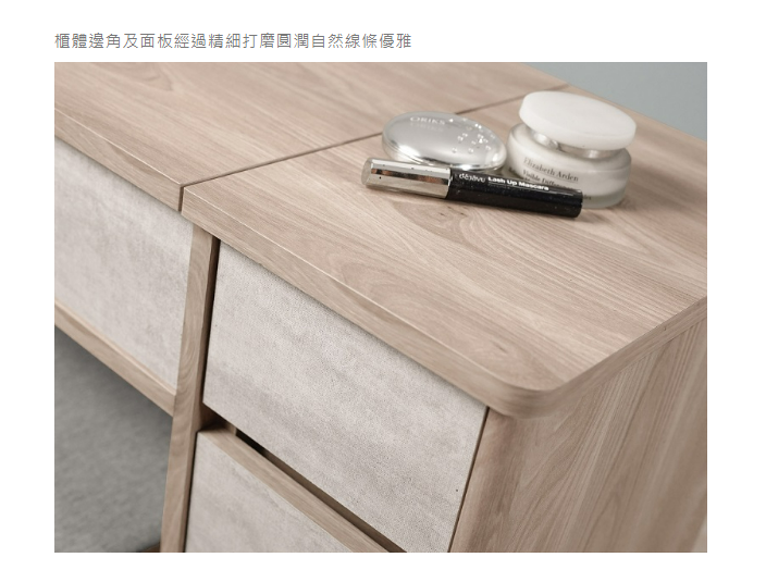 掀鏡設計,鏡子蓋上可當書桌,物品不積灰塵,鏡子也不會對到床喔!