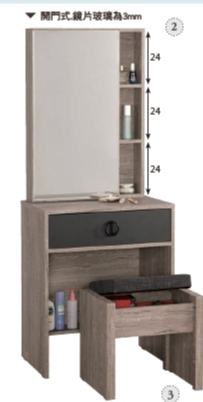 2尺化妝台:寬60 深40 高154 cm
