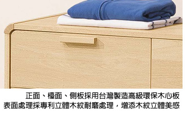 主體:低甲醛防蛀木心板 專利立體木紋耐磨處理,增添木紋立體美感