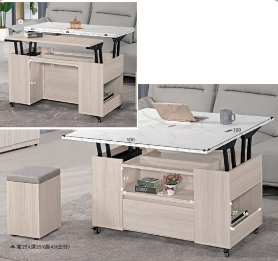 桌面:採用仿大理石美耐皿木心板材質.具高溫耐刮磨特性、