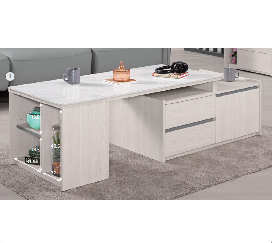 A1429-1 希斯洛4尺岩板伸縮大茶几 ⊙桌面12mm岩板、 ⊙附活動隔板1片、 ⊙雙邊造型.雙邊使用