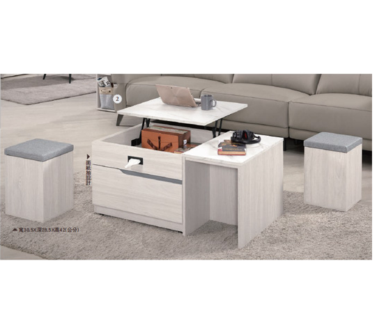 A1425-1 丹尼斯4*4岩板多功能大茶几 ⊙附輔助椅2張、 ⊙活動隔板1片、 ⊙油壓升降五金