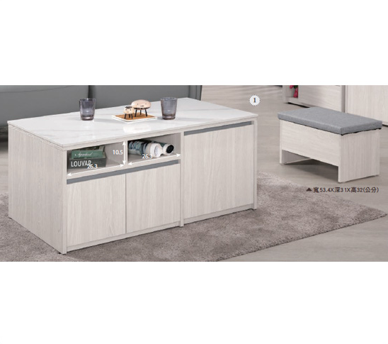 A1426-1 丹尼斯3.3尺岩板多功能大茶几 ◆附輔助椅x2、活動隔板x2 油壓升降五金