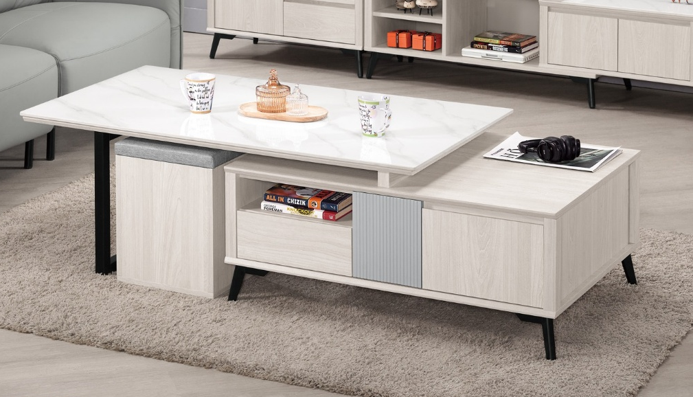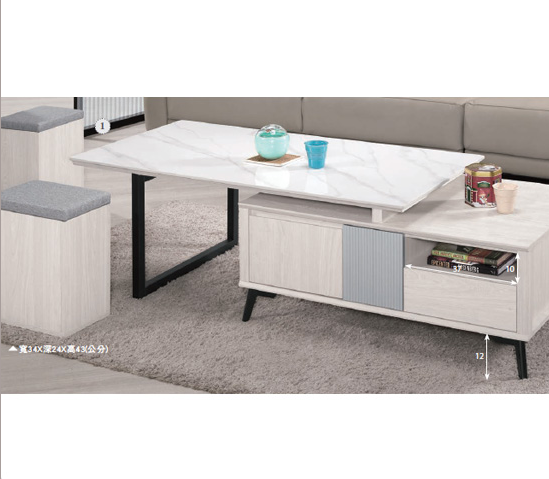 A1431-1 喬倫斯4.3尺岩板伸縮大茶几 桌面12mm岩板雙邊抽屜,雙邊開門附輔助椅*2