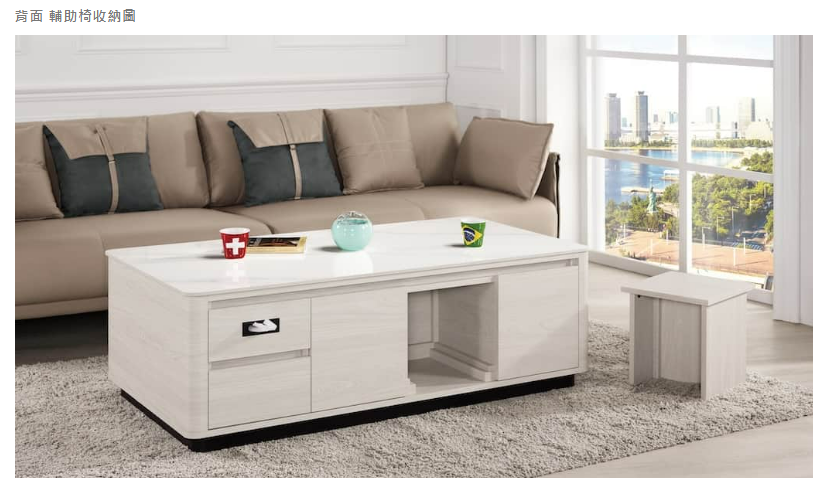 2個椅凳可收進茶几內,面紙抽設計,多功能超實用收納。