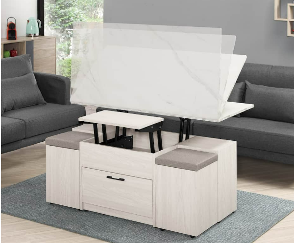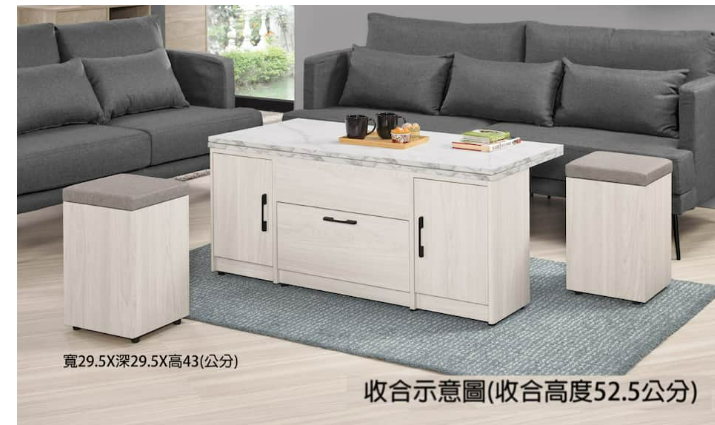 2個椅凳,可掀開收納,平時可收在茶几內部,不佔空間。