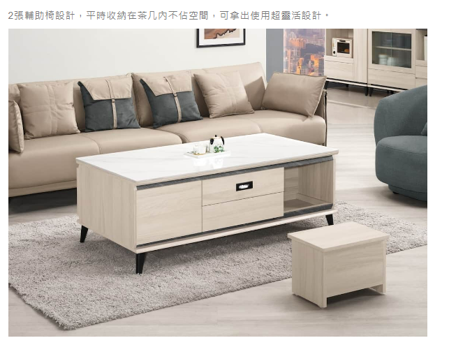 2張輔助椅設計,平時收納在茶几內不佔空間,可拿出使用超靈活設計。