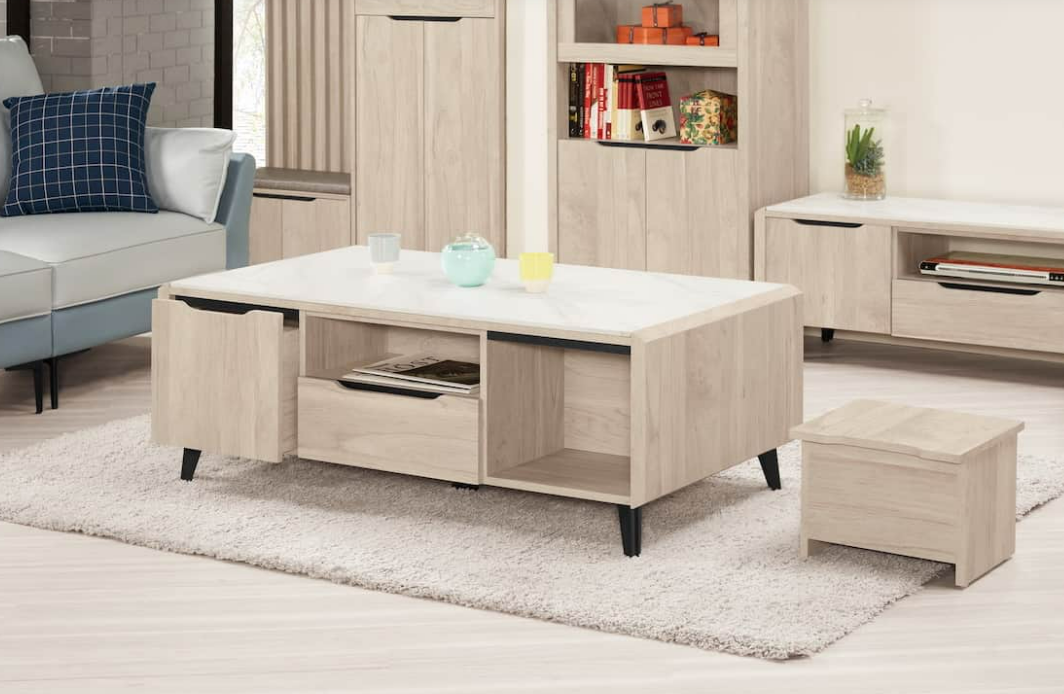 2張輔助椅設計,平時收納在茶几內不佔空間,可拿出使用超靈活設計。