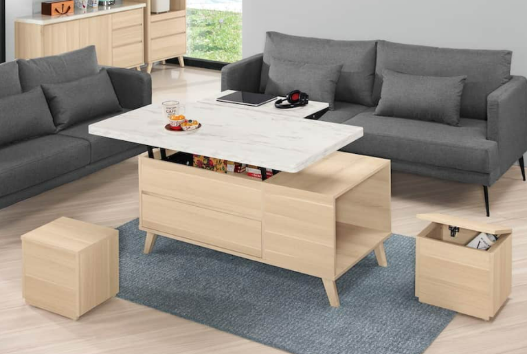 A1453-1克萊爾4*4仿石面多功能大茶几 附輔助椅*2 油壓升降五金