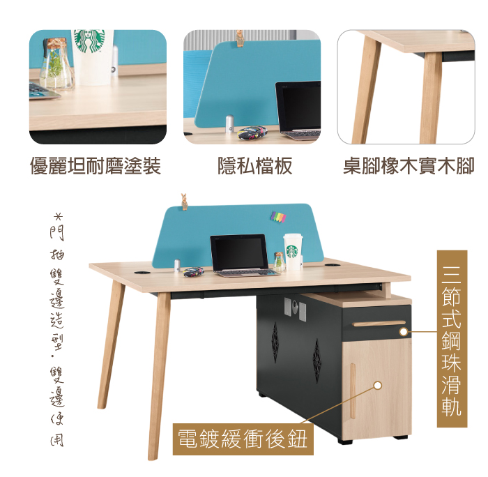 A1575-1 勞倫斯二人辦公桌 門抽雙邊造型 雙邊使用